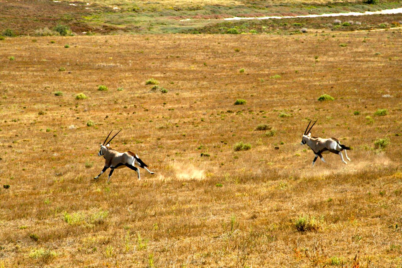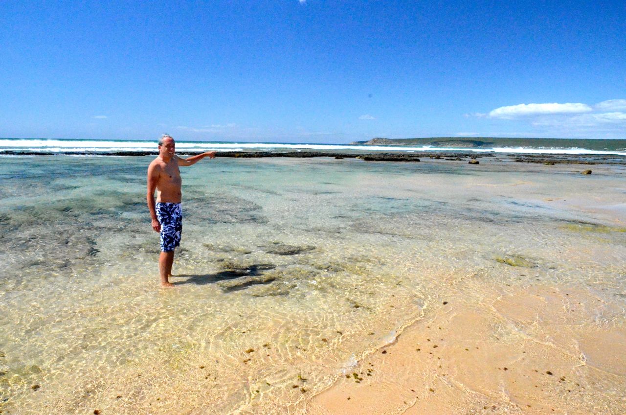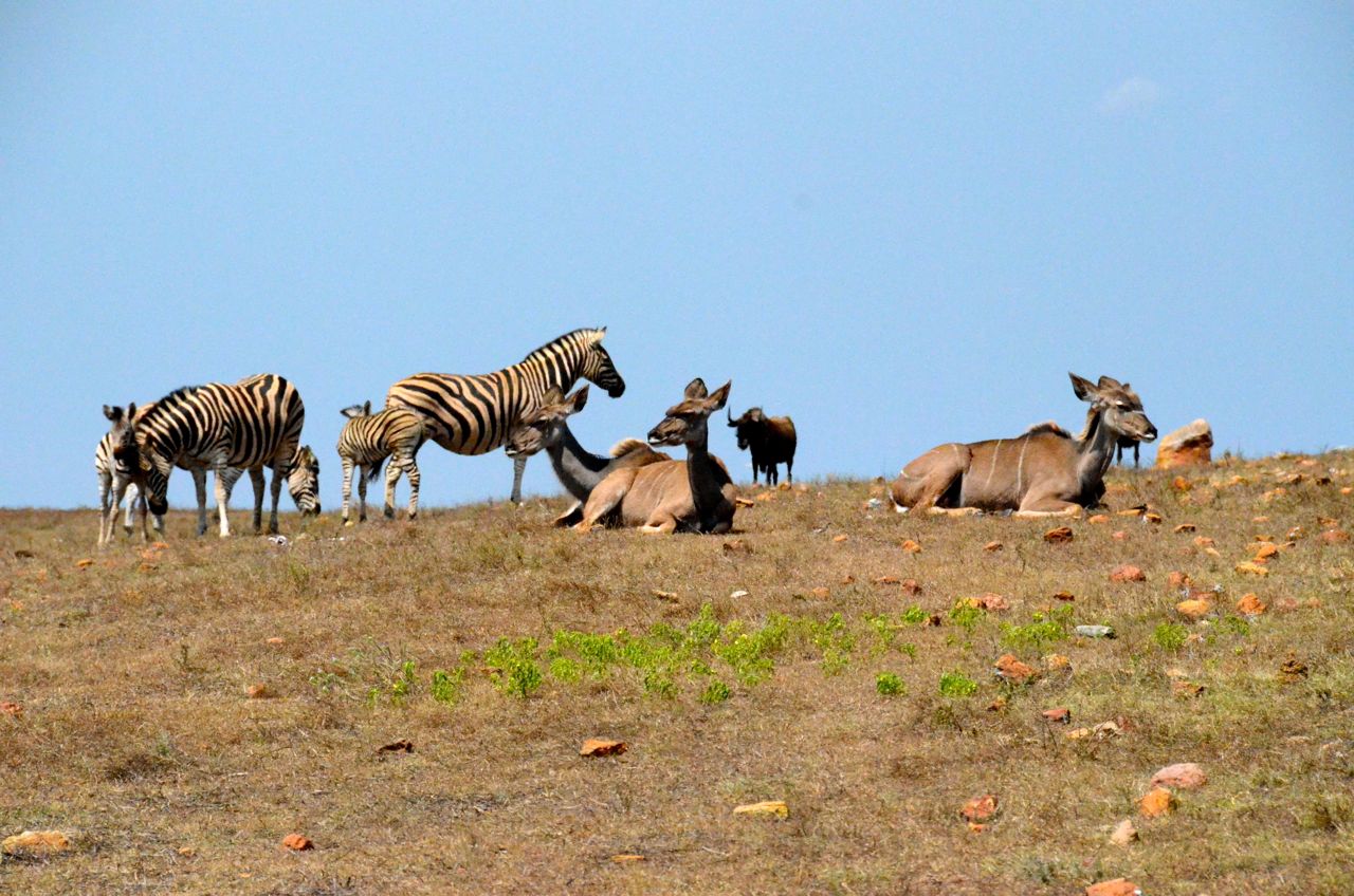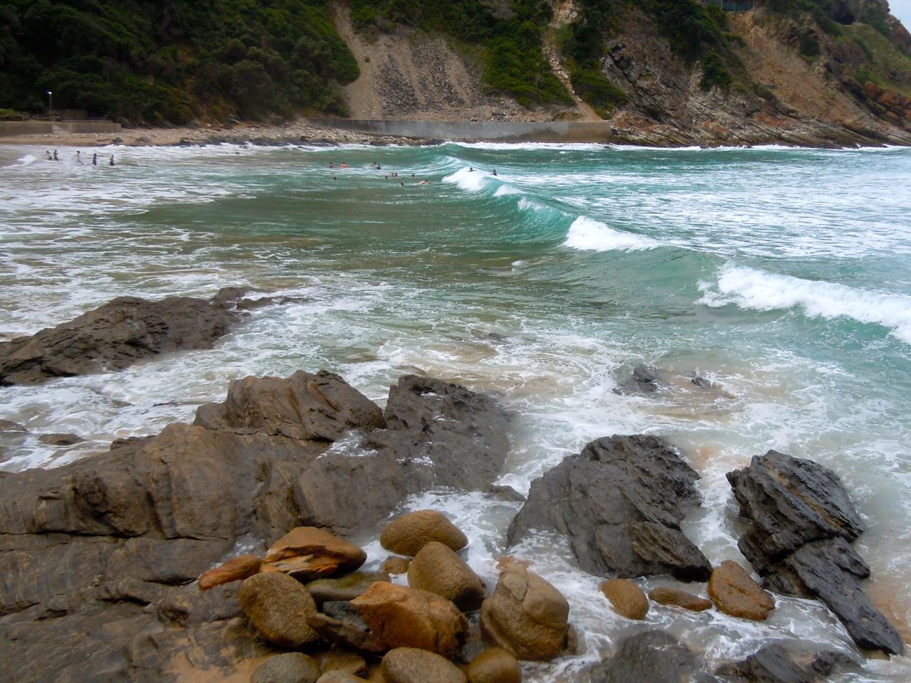 Am Strand von Whitsand baden wir nach dem Frühstück. Danach fahren wir über Heidelberg zur Mosel Bay und nehmen unterwegs beim Garden Route Park an einer Safari-Tour teil, bei der wir u.a. Giraffen, Gnus, Springböcke, Löwen, Nashörner, Elefanten sehen. In einer kleinen Surferbucht, der Victoria Bay bei George, übernachten wir im Pier Plesier.