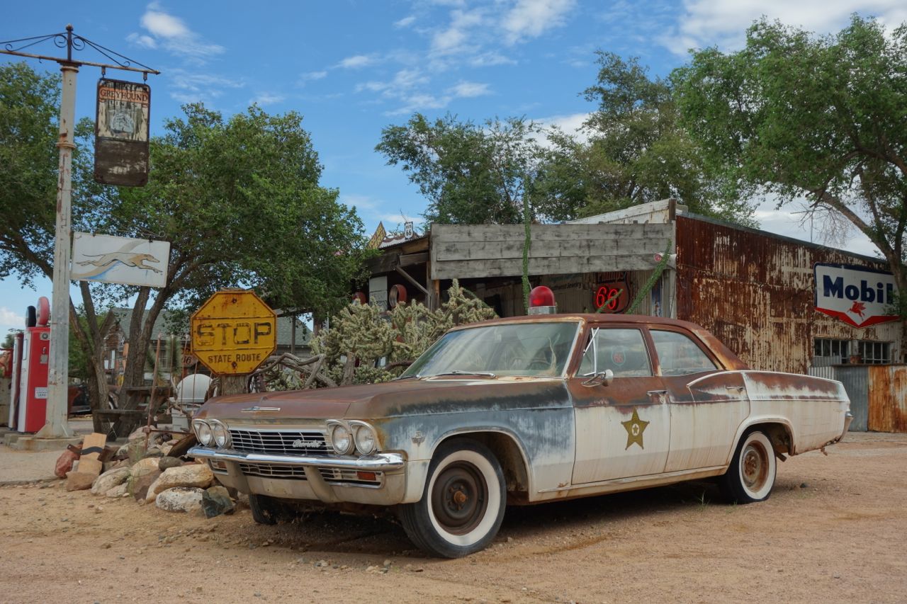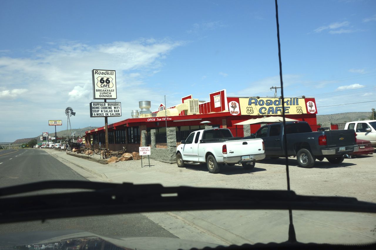 In Kingman nehmen wir die historische Route 66 und fahren nach Hackberry, wo wir im General Store, welcher eigentlich eher ein Museum ist, einkaufen. Danach geht es weiter nach Seligman, wo wir im Roadkill Café zu Mittag essen. Die Cola gibt’s im großen Marmeladenglas und auch der Vegetarierer findet trotz des abschreckenden Mottos “You kill it, we grill it.” etwas. Auch der nächste Stop in Williams bietet einige historische Fotomotive. Danach verlassen wir die Mother Road und fahren nach Norden zum Grand Canyon, wo wir am Mather Point die Aussicht genießen und im Trailer Village übernachten.