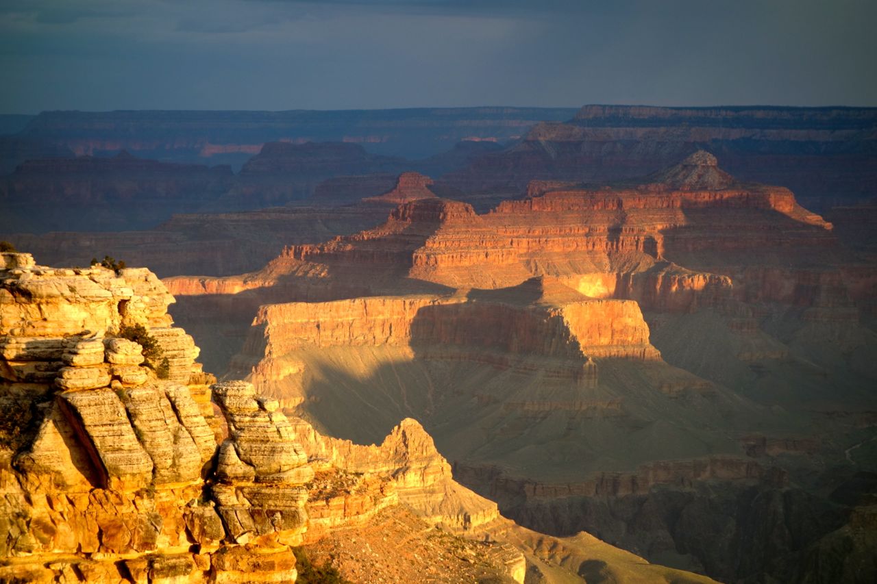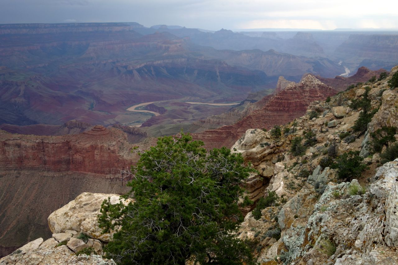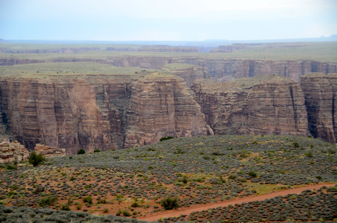 Bereits vor 6 Uhr starten wir zum Mather Point, um das Licht und die Farben der ersten Sonnenstrahlen im Grand Canyon zu sehen. Danach lassen wir uns vom Shuttle-Bus an unterschiedliche Aussichtspunkte bis hin zu Hermits Rest bringen. Auf der Rückfahrt setzt starker Regen ein. Wir fahren los Richtung Osten und entdecken den Lipan Point, der uns sehr beeindruckt, weil man hier deutlich mehr vom Colorado sieht, als auf allen anderen Aussichtspunkten davor. Wir übernachten in der Cameron Trading Post in Cameron.