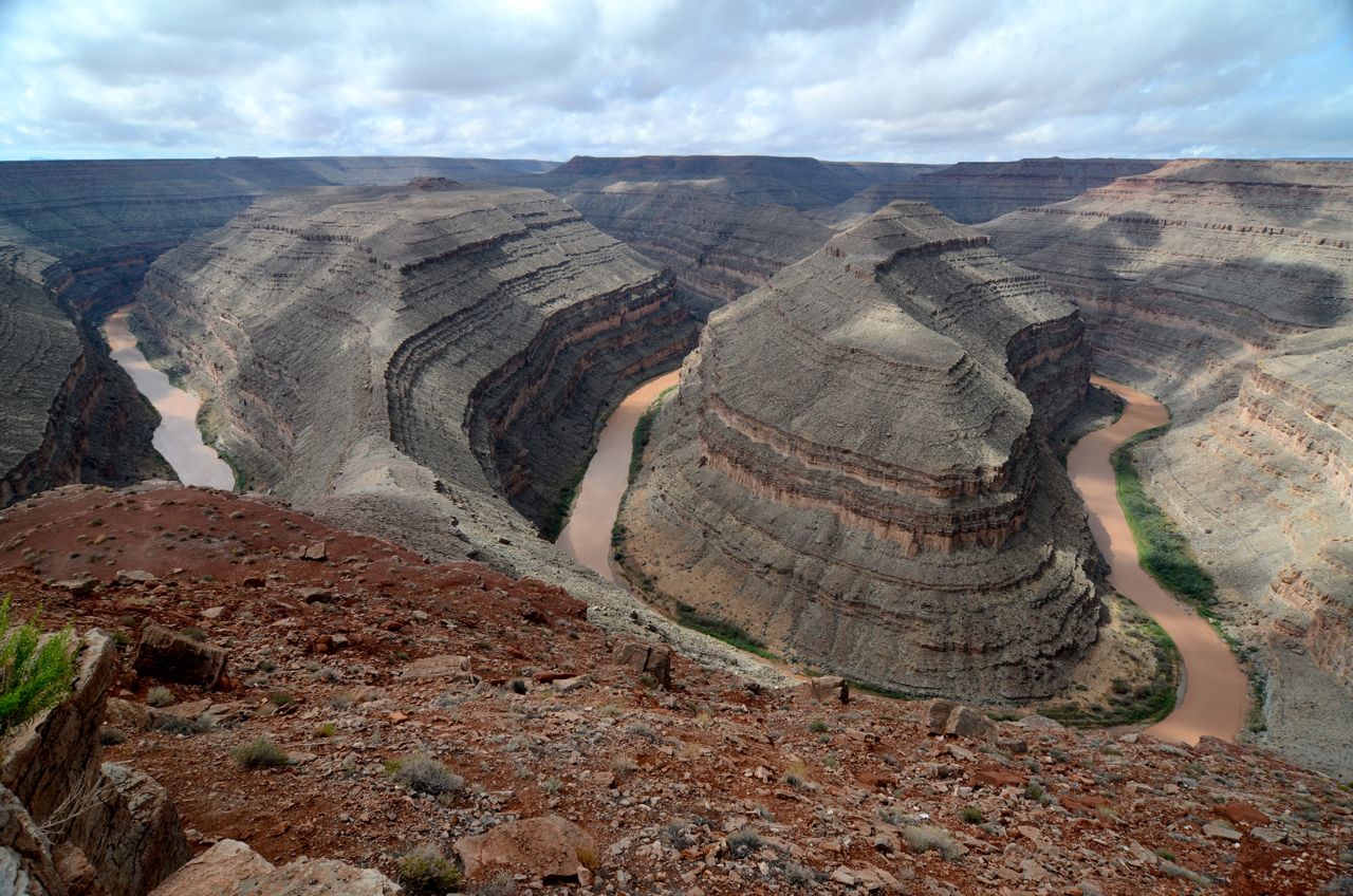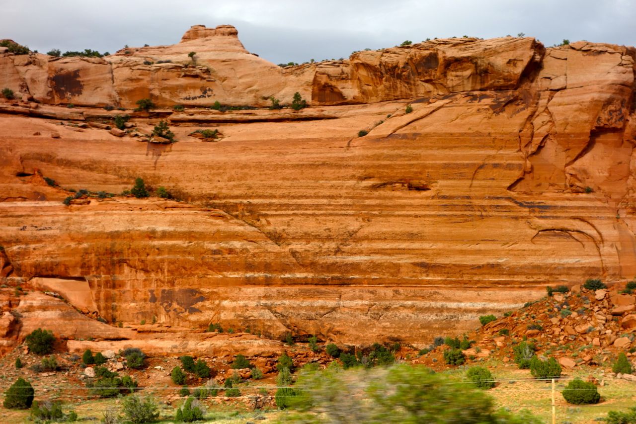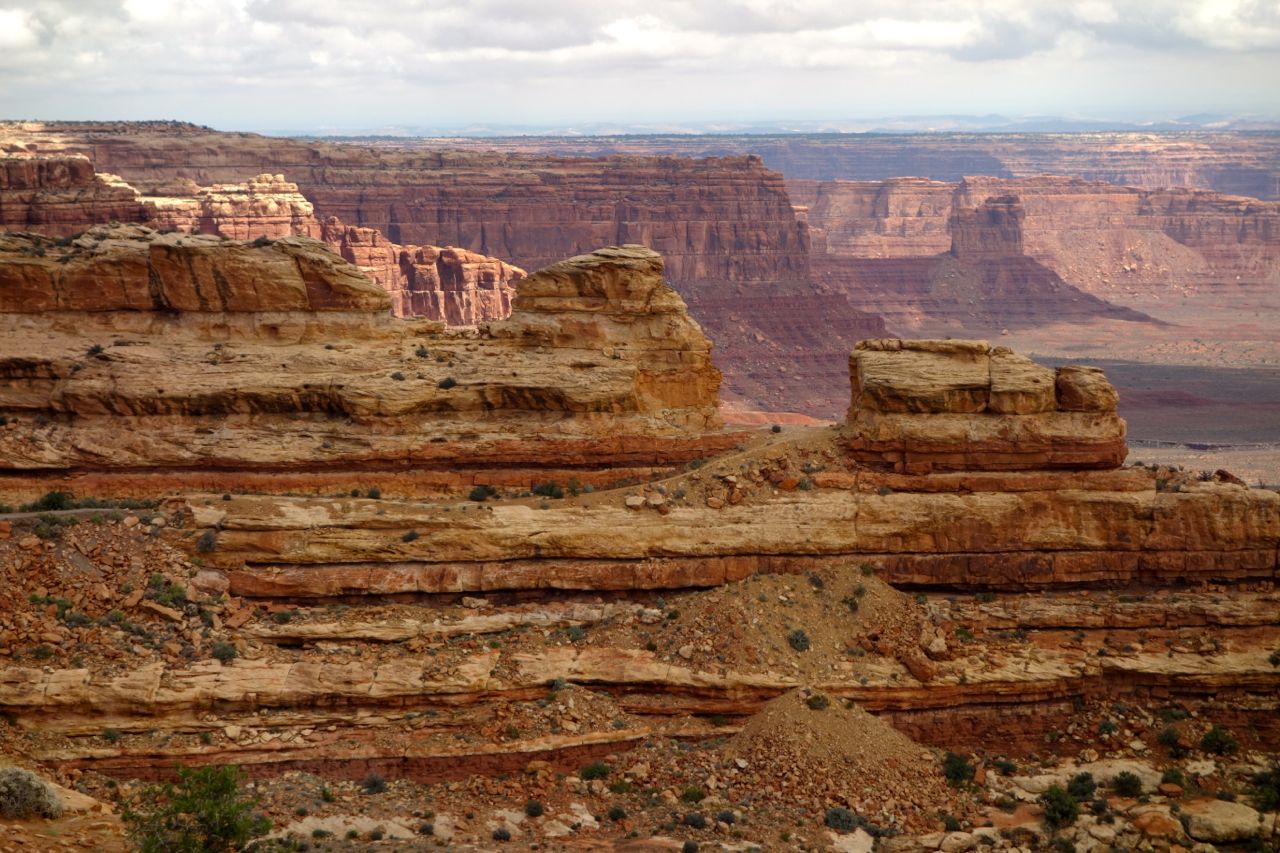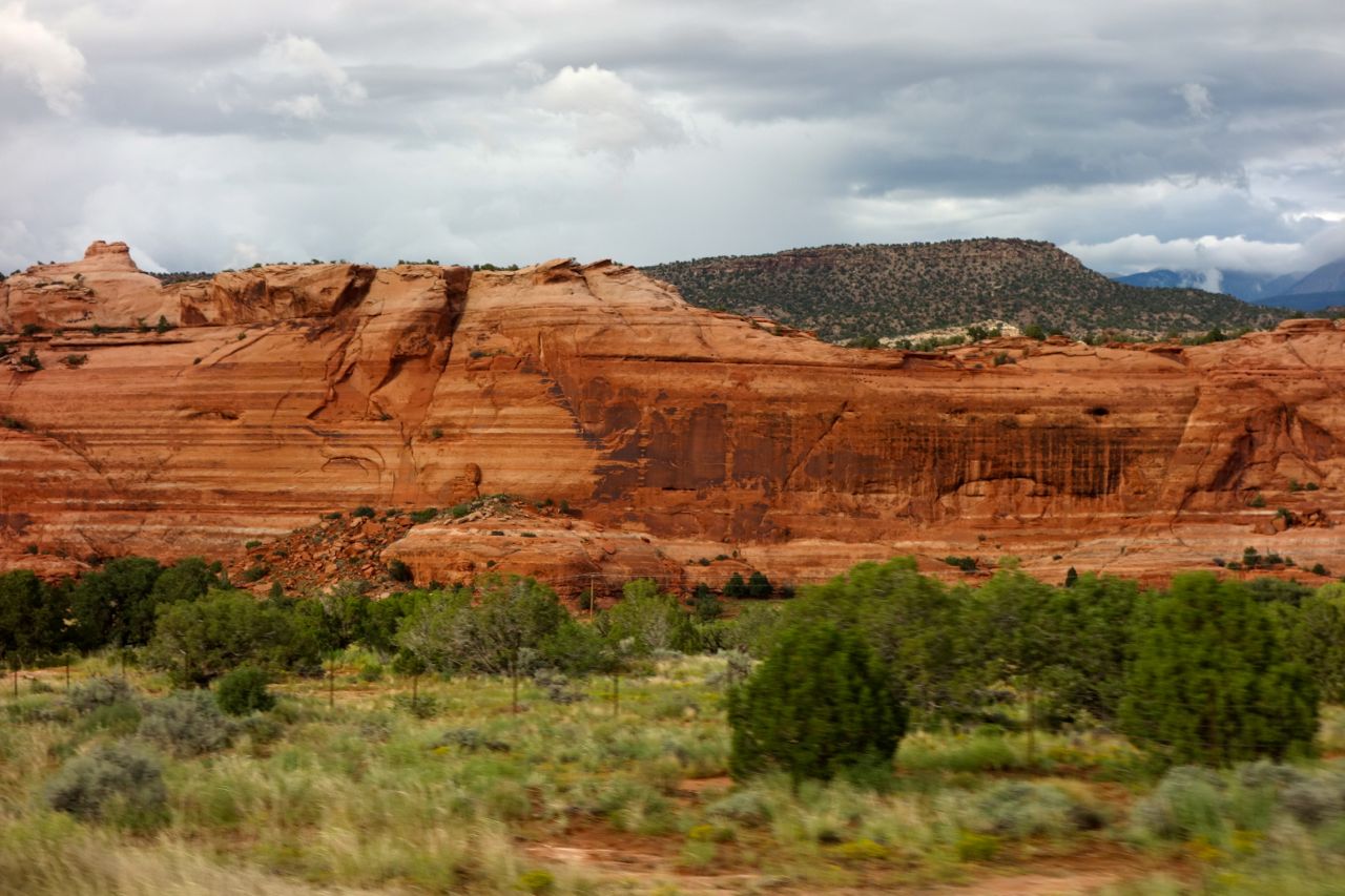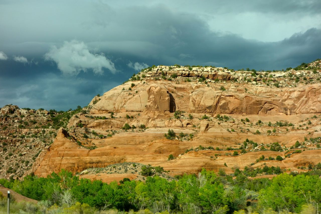 Weil das Wetter nicht optimal ist, halten wir uns nicht sehr lange im Monument Valley auf und fahren weiter Richtung Norden zum Goosenecks State Park, wo der San Juan River mehrere Schlaufen zieht. Anschliessend fahren für zum Natural Bridges Park, wo man drei durch einen Fluss natürlich ausgewaschene Brücken sieht. Weiter geht es Richtung Moab, wo wir im Canyonlands Campground übernachten.
