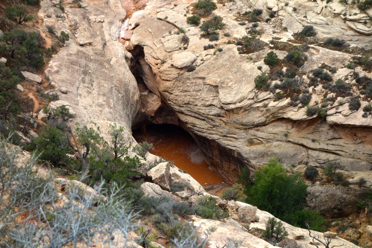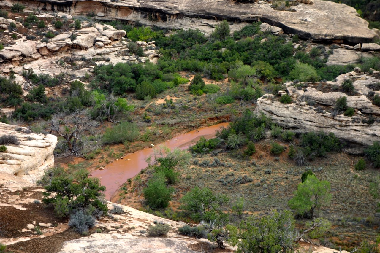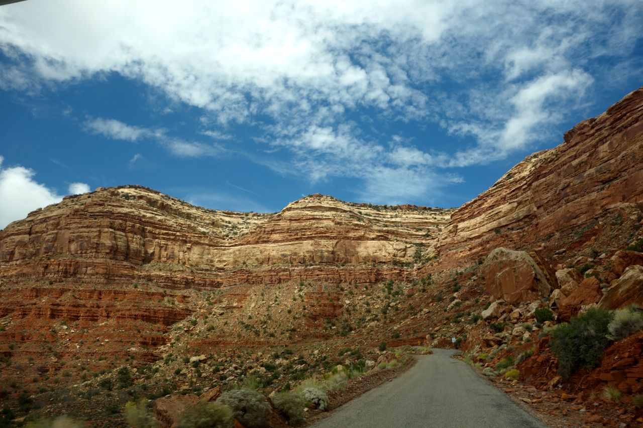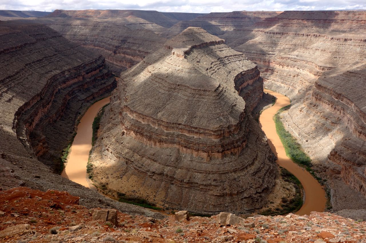 Weil das Wetter nicht optimal ist, halten wir uns nicht sehr lange im Monument Valley auf und fahren weiter Richtung Norden zum Goosenecks State Park, wo der San Juan River mehrere Schlaufen zieht. Anschliessend fahren für zum Natural Bridges Park, wo man drei durch einen Fluss natürlich ausgewaschene Brücken sieht. Weiter geht es Richtung Moab, wo wir im Canyonlands Campground übernachten.