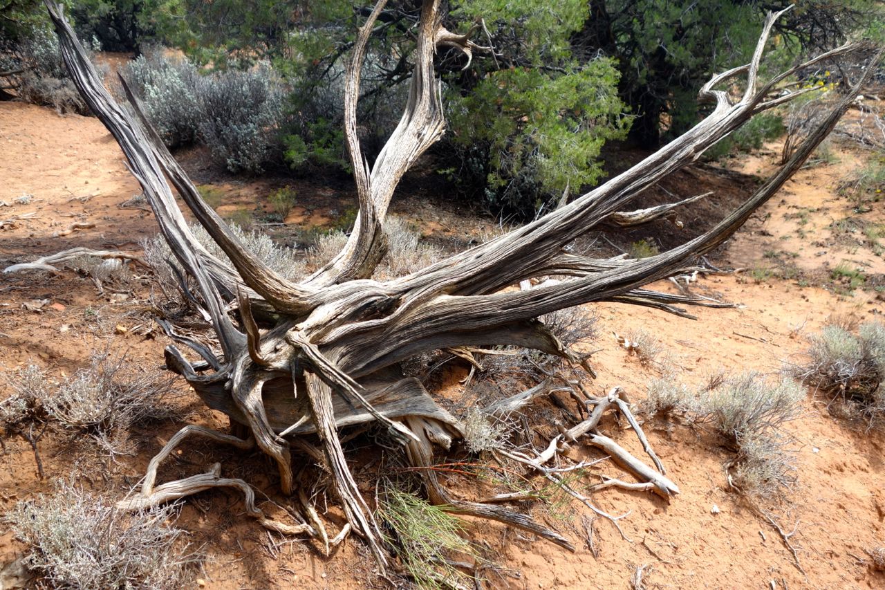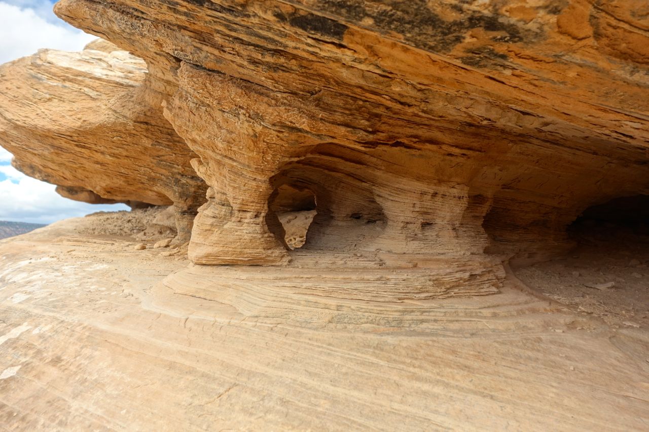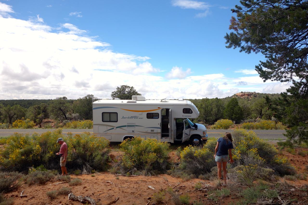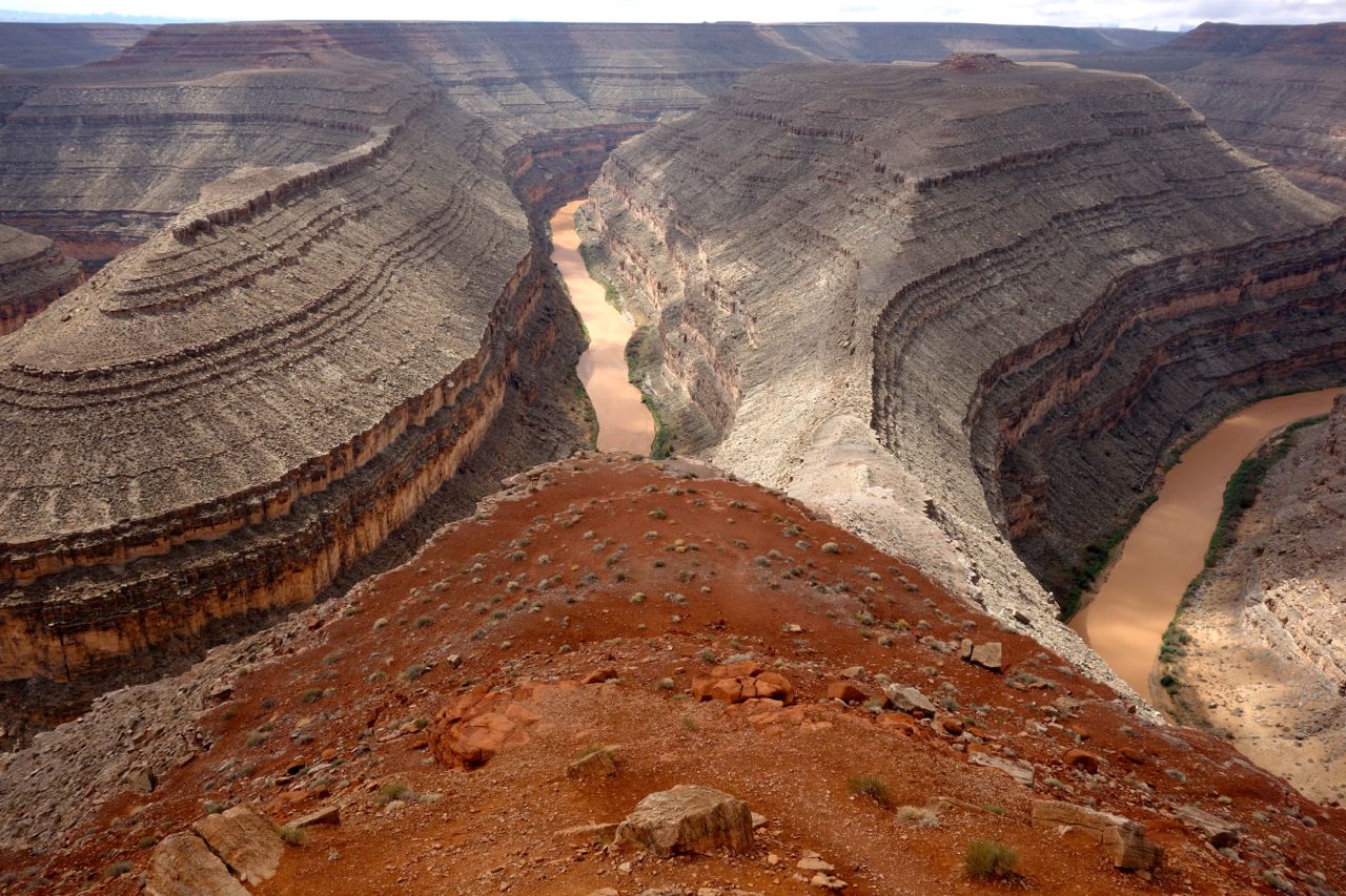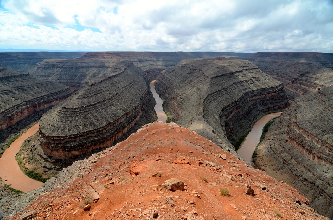 Weil das Wetter nicht optimal ist, halten wir uns nicht sehr lange im Monument Valley auf und fahren weiter Richtung Norden zum Goosenecks State Park, wo der San Juan River mehrere Schlaufen zieht. Anschliessend fahren für zum Natural Bridges Park, wo man drei durch einen Fluss natürlich ausgewaschene Brücken sieht. Weiter geht es Richtung Moab, wo wir im Canyonlands Campground übernachten.
