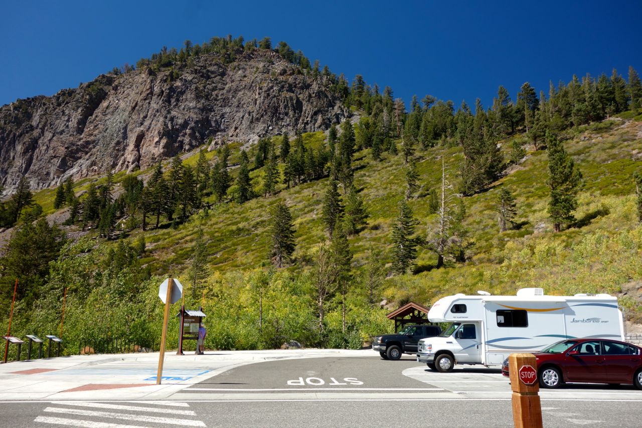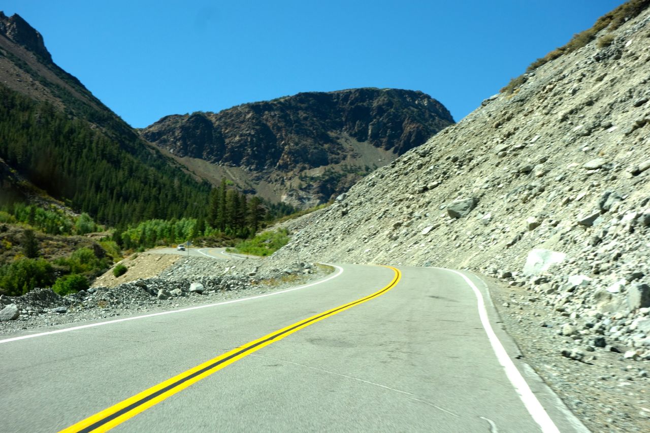 Von Lone Pinne aus fahren wir das Owens Valley aufwärts über Bishop zum Mono Lake. Auf dem Weg machen wir einen kurzen Abstecher zu den Mammoth Lakes. Anschliessend fahren wir über den Tioga-Pass durch den Yosemite-Nationalpark. Diese Route war wegen der Waldbrände über Wochen gesperrt und wurde erst vor 3 Tagen wieder geöffnet. An manchen Stellen sahen wir noch Rauch aufsteigen und verbrannte Waldabschnitte. Wir übernachten im Marble Quarrt RV Ressort in Columbia.