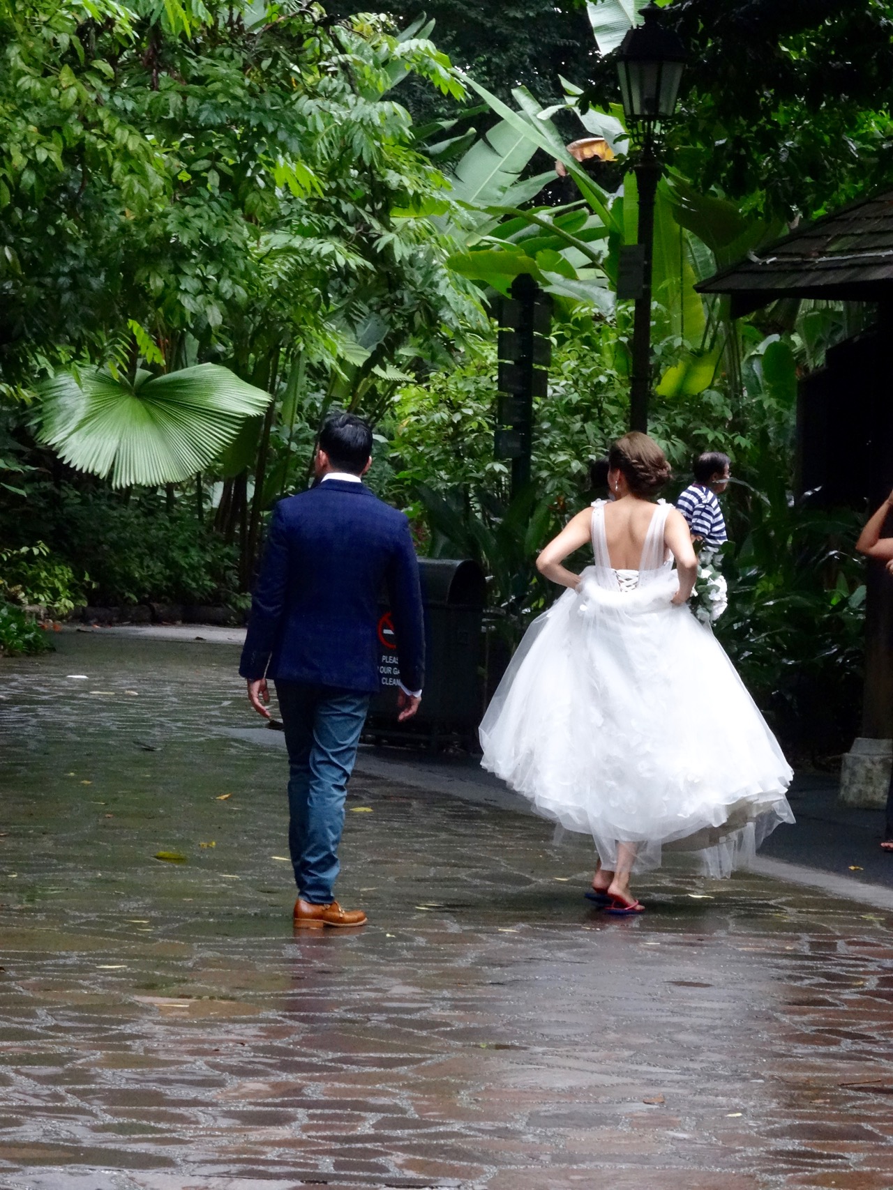 Der Tag beginnt mit starkem, warmem Regen. Wir beschließen deshalb, die Malls der Orchad Road aufzusuchen, da man sich hier trockenen Fußes kilometerweit unterirdisch fortbewegen kann. In der ION Orchad Mall frühstücken wir frische Früchte. Nachdem der Regen nachgelassen hat, gehen wir weiter zu den Singapore Botanic Gardens und besuchen dort auch den Orchideen Garten. Am Abend essen wir wieder indisch bei der Orchad Road.