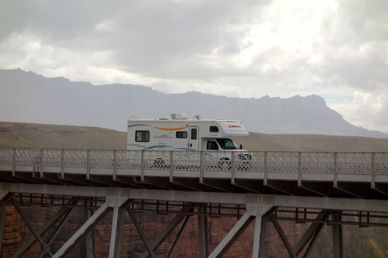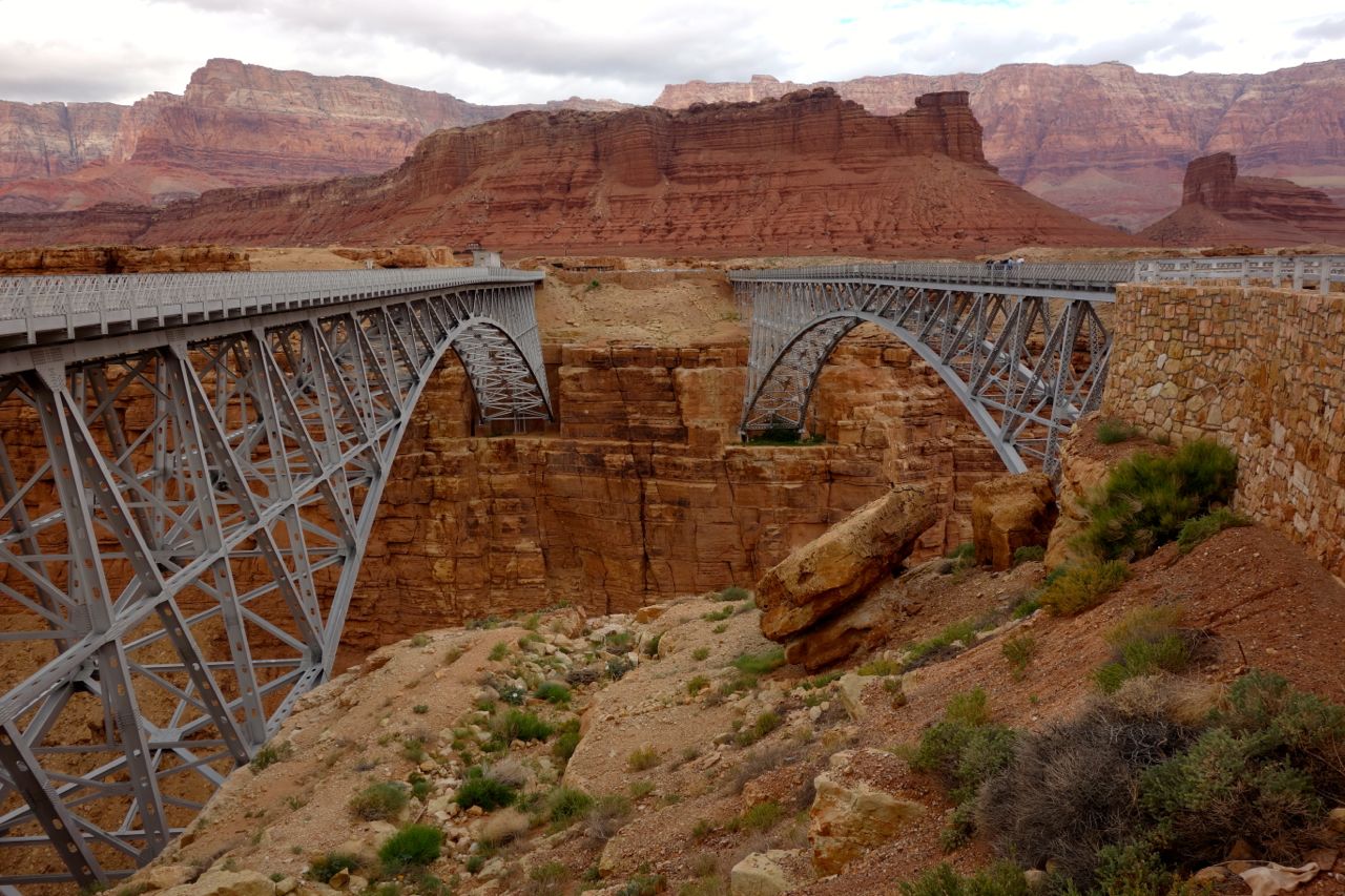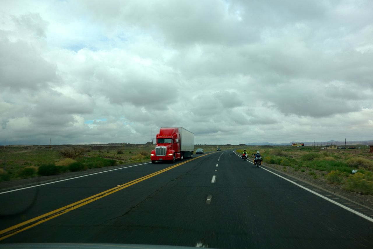 Bereits vor 6 Uhr starten wir zum Mather Point, um das Licht und die Farben der ersten Sonnenstrahlen im Grand Canyon zu sehen. Danach lassen wir uns vom Shuttle-Bus an unterschiedliche Aussichtspunkte bis hin zu Hermits Rest bringen. Auf der Rückfahrt setzt starker Regen ein. Wir fahren los Richtung Osten und entdecken den Lipan Point, der uns sehr beeindruckt, weil man hier deutlich mehr vom Colorado sieht, als auf allen anderen Aussichtspunkten davor. Wir übernachten in der Cameron Trading Post in Cameron.