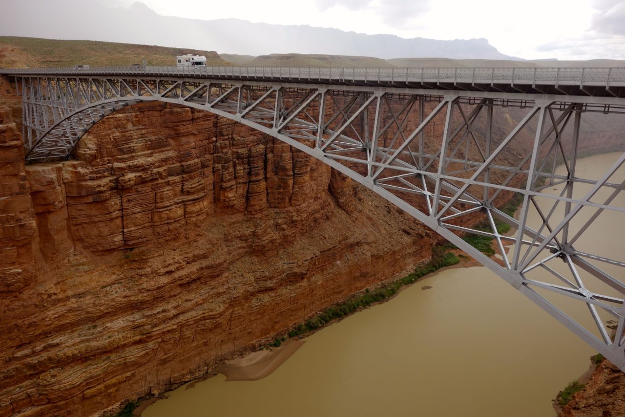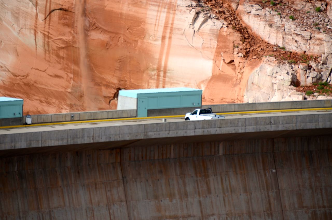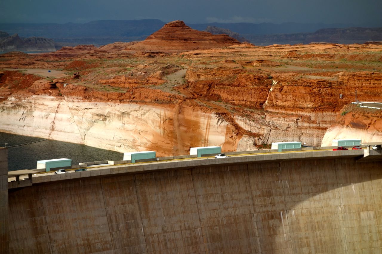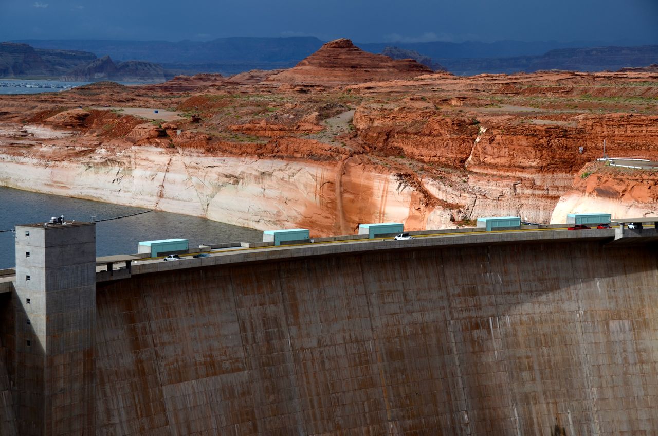 Auf dem Highway 89 fahren wir nach Norden in Richtung Page. Eigentlich sollte der durch einen Erdrutsch im Februar gesperrte Abschnitt südlich von Page seit dem 29.August wieder freigegeben sein, zumindest tagsüber, sagte man uns in Cameron. Vermutlich führten die teilweise heftigen Niederschläge der letzten Tage aber dazu, dass die Strasse heute wieder gesperrt wurde, so dass wir ab Bitter Springs die Highway 89A nach Kanab nehmen mussten. Bei Lees Ferry überqueren wir den Colorado und fahren über Jacob Lake und Kanab nach Page. Kurz vor Page überqueren wir wieder den Colorado über eine Brücke direkt neben dem Glen Canyon Damm, welche den Colorado zum Lake Powell aufstaut. Wir übernachten auf dem Lake Powell Campground.