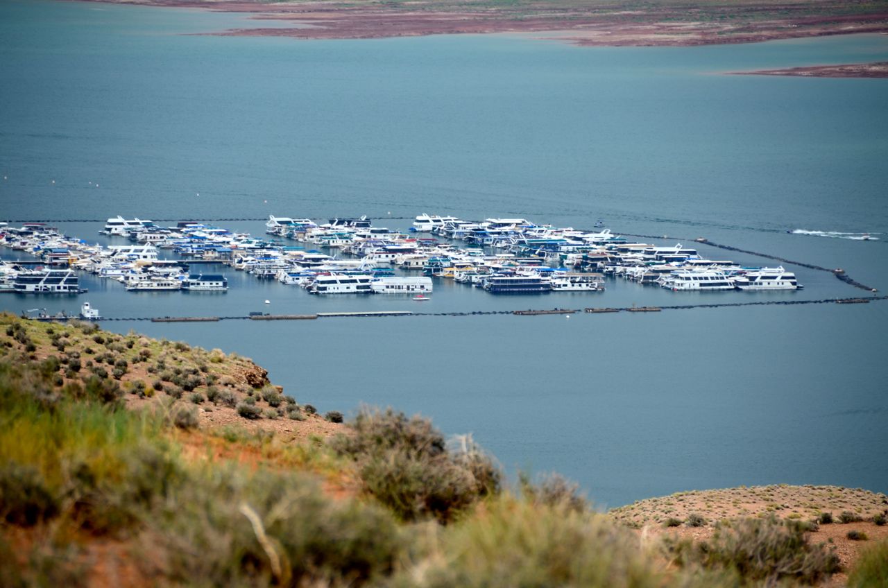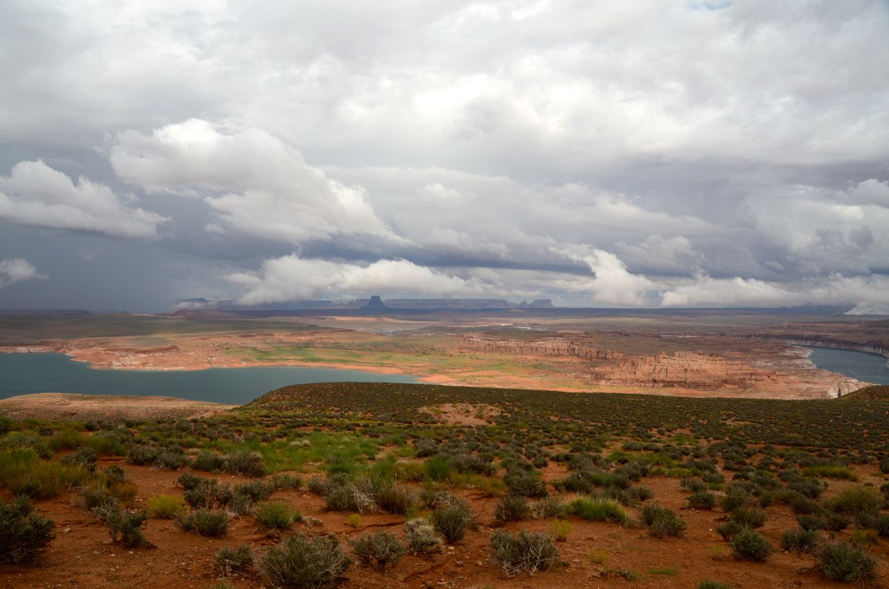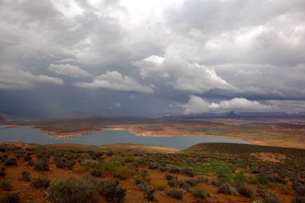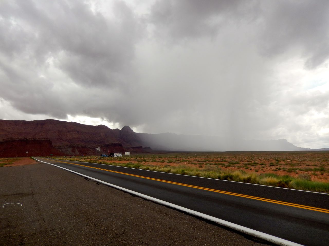 Auf dem Highway 89 fahren wir nach Norden in Richtung Page. Eigentlich sollte der durch einen Erdrutsch im Februar gesperrte Abschnitt südlich von Page seit dem 29.August wieder freigegeben sein, zumindest tagsüber, sagte man uns in Cameron. Vermutlich führten die teilweise heftigen Niederschläge der letzten Tage aber dazu, dass die Strasse heute wieder gesperrt wurde, so dass wir ab Bitter Springs die Highway 89A nach Kanab nehmen mussten. Bei Lees Ferry überqueren wir den Colorado und fahren über Jacob Lake und Kanab nach Page. Kurz vor Page überqueren wir wieder den Colorado über eine Brücke direkt neben dem Glen Canyon Damm, welche den Colorado zum Lake Powell aufstaut. Wir übernachten auf dem Lake Powell Campground.