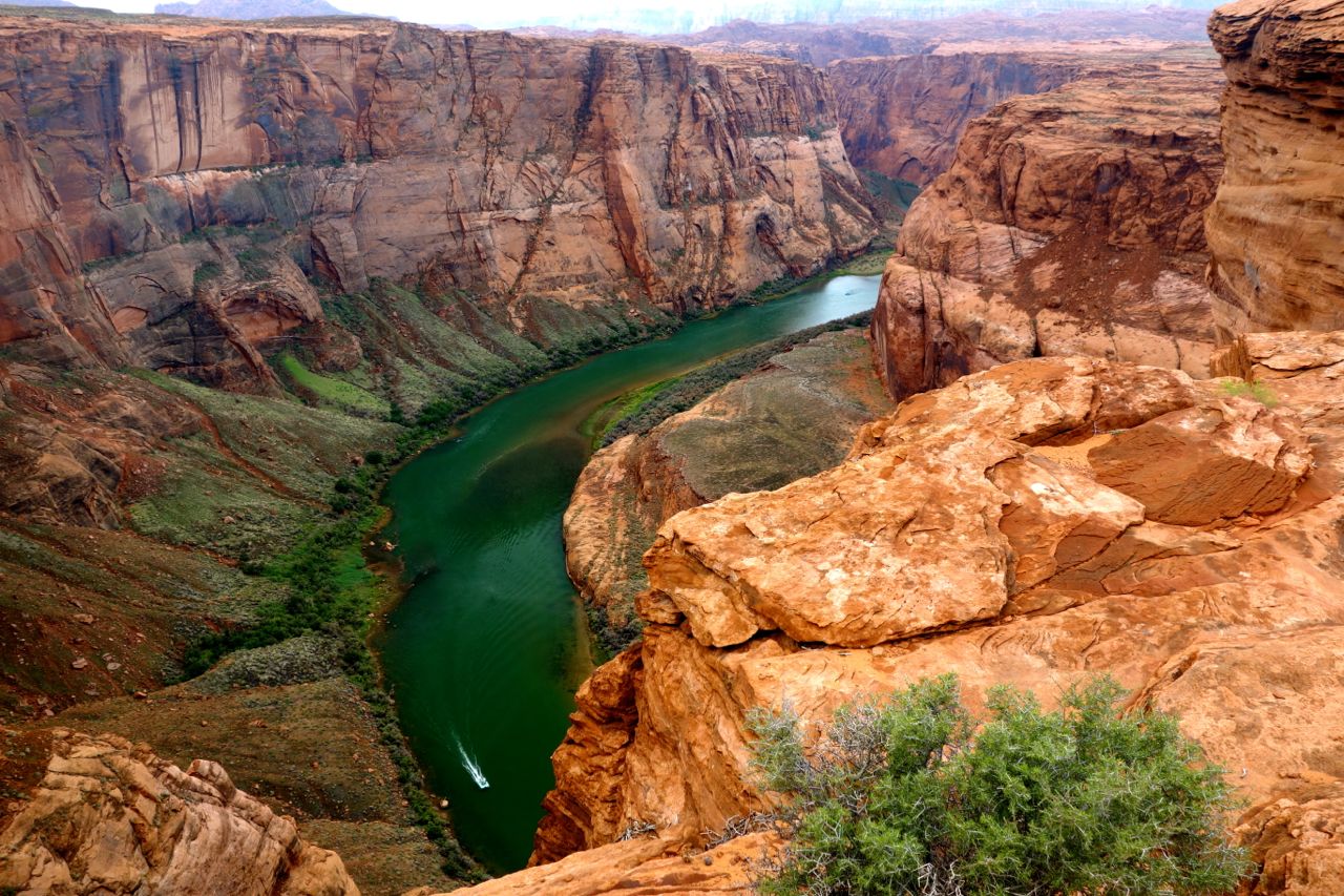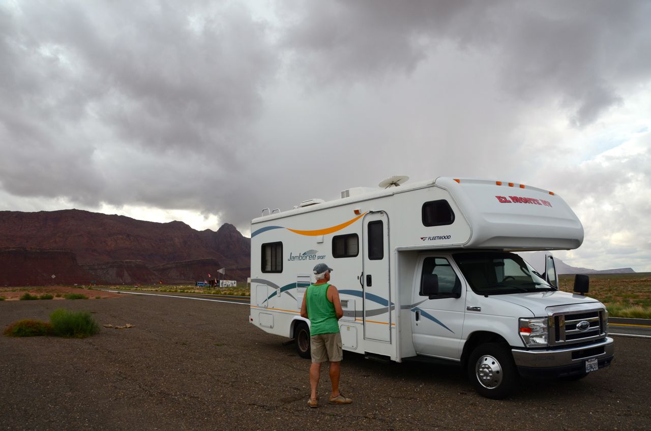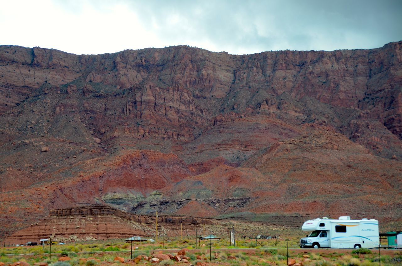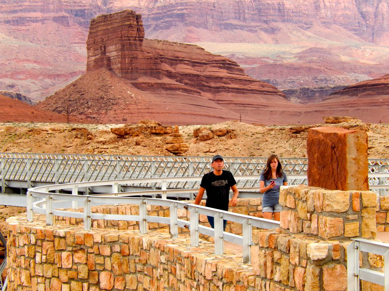 Auf dem Highway 89 fahren wir nach Norden in Richtung Page. Eigentlich sollte der durch einen Erdrutsch im Februar gesperrte Abschnitt südlich von Page seit dem 29.August wieder freigegeben sein, zumindest tagsüber, sagte man uns in Cameron. Vermutlich führten die teilweise heftigen Niederschläge der letzten Tage aber dazu, dass die Strasse heute wieder gesperrt wurde, so dass wir ab Bitter Springs die Highway 89A nach Kanab nehmen mussten. Bei Lees Ferry überqueren wir den Colorado und fahren über Jacob Lake und Kanab nach Page. Kurz vor Page überqueren wir wieder den Colorado über eine Brücke direkt neben dem Glen Canyon Damm, welche den Colorado zum Lake Powell aufstaut. Wir übernachten auf dem Lake Powell Campground.