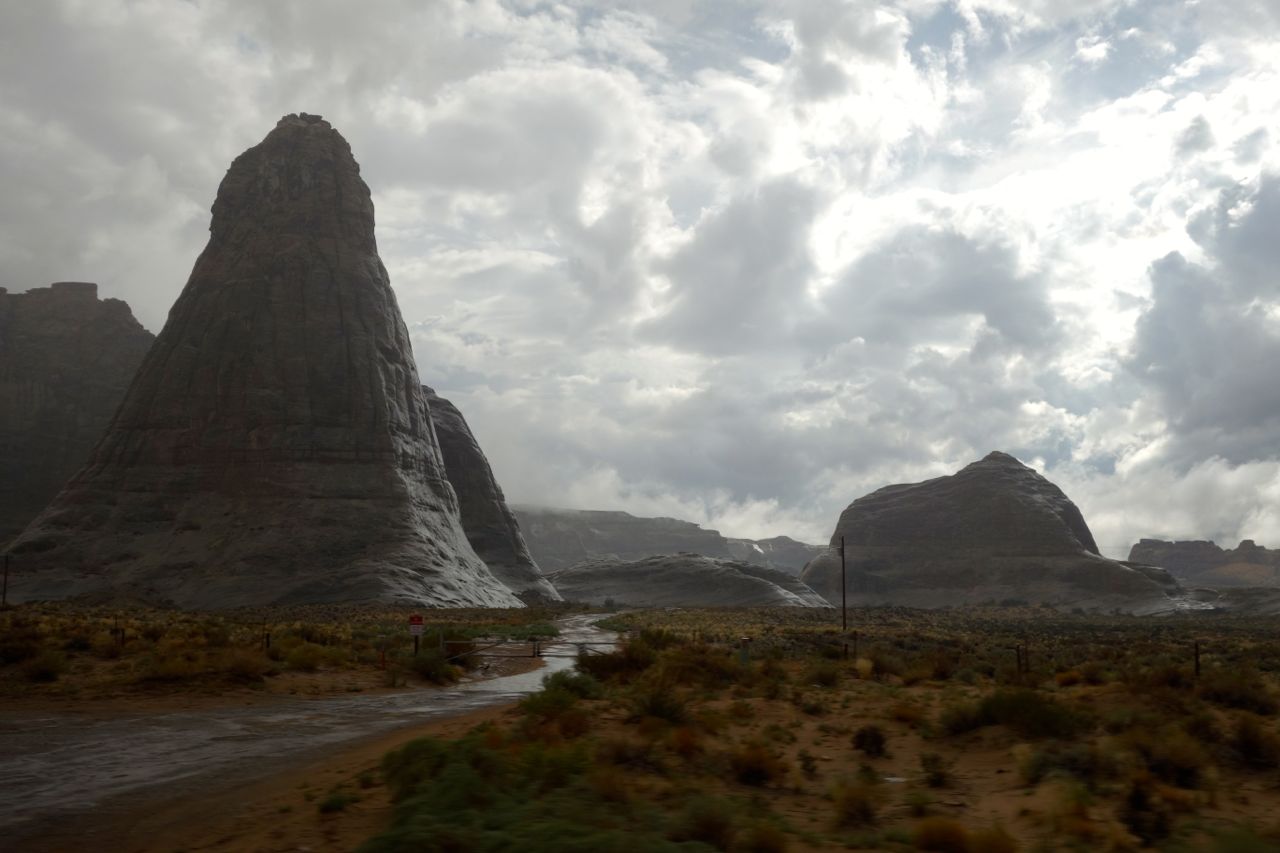 Aufgrund des schlechten Wetters verzichten wir auf den Besuch des Antelope Canyons. Wir fahren auf der US 89 Richtung Cameron und erreichen 5 Meilen hinter Page den Horseshoe Bend (hufeisenförmiger Verlauf des Colorado-Rivers). Danach fahren wir über die US 98 Richtung Kayenta und von dort aus weiter zum Monument Valley. Kurz nach unserer Ankunft beginnt es in Strömen zu regnen. Wir übernachten bei der Goulding’s Lodge.