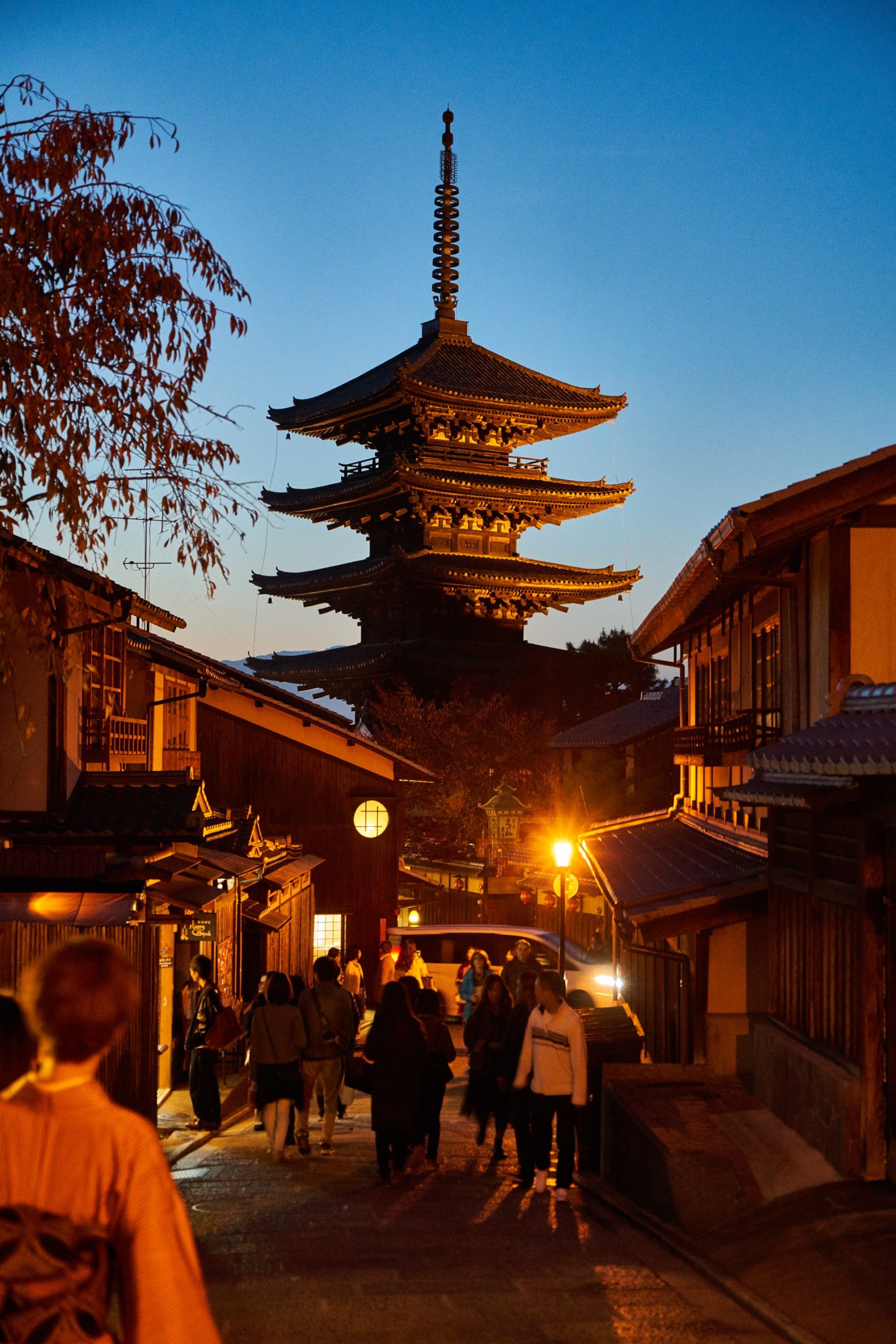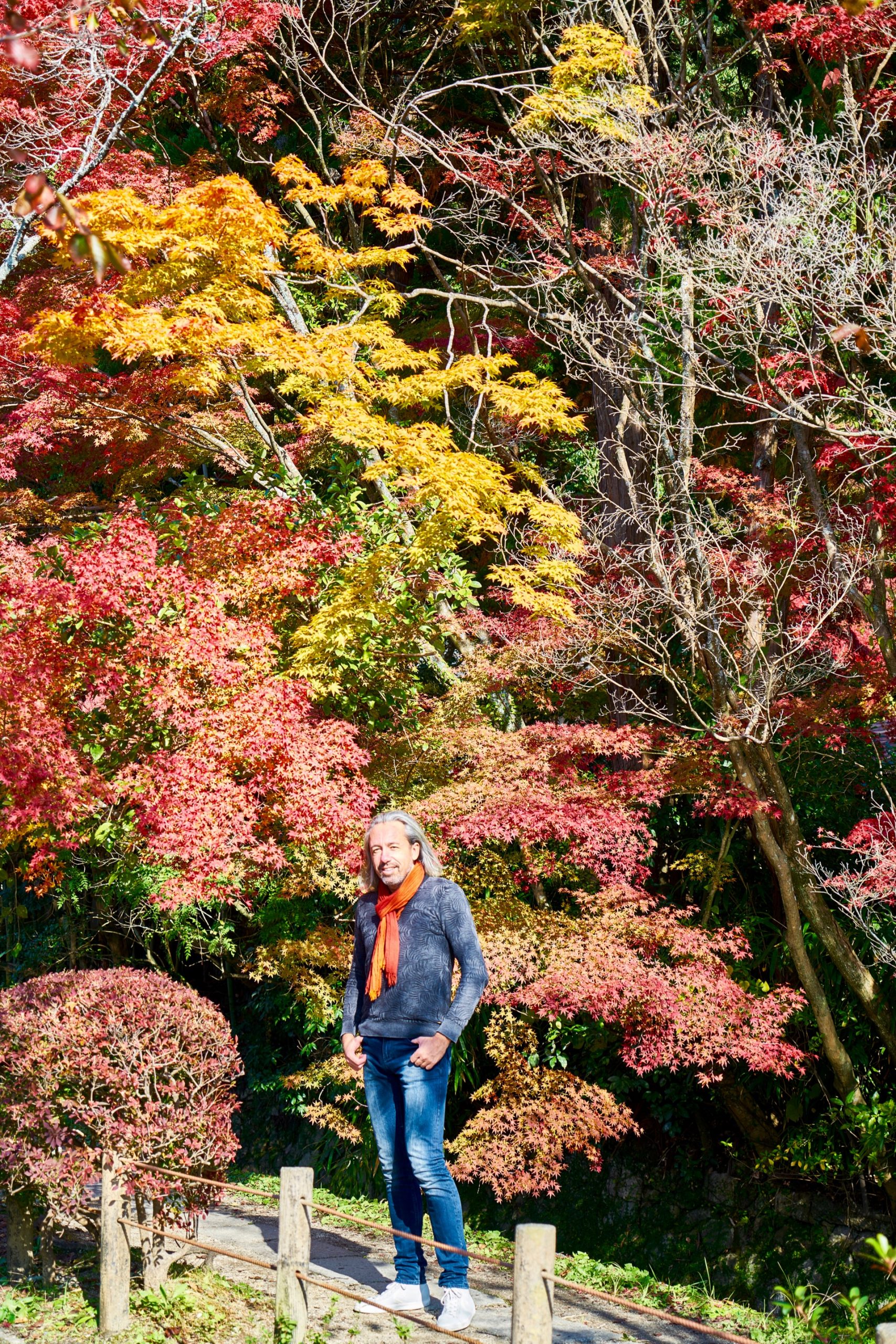 Mit dem Bus fahren wir zum Ginkaku-ji (銀閣寺, „Tempel des Silbernen Pavillons“), einem schlichteren Tempel mit einem wunderschön angelegten Garten. Wir genießen die Pracht des bunten Herbstlaubes und trinken beim Tempel einen Matcha. Anschliessend gehen wir auf dem Philosophenweg zum Kaze-no-Yakata-Shop, einem kleinen Laden, der handgefertigte Seidenball-Mobiles (Kinu temari) verkauft. Nachdem wir dort unsere ersten Souveniers besorgt haben, gehen wir auf dem Philosophenweg weiter zum Eikan-do Zenrin-ji-Tempel. Auch hier bewundern wir die Gärten mit dem Herbstlaub, ebenso wie die vielen Japaner, welche dieses kurze Schauspiel als Momiji-Gari feiern. Zu Fuß gehen wir weiter zum Kiyomizu-dera-Tempel, welcher bereits in der Abendsonne liegt. In Gion essen wir am Abend italienisch.